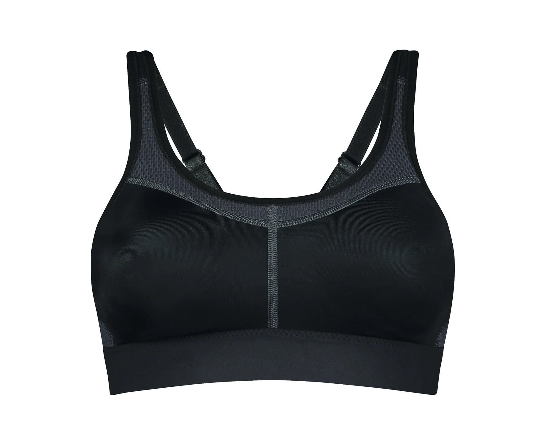 Wide bottom band keeps the bra snug against the body with adjustable elastic straps
