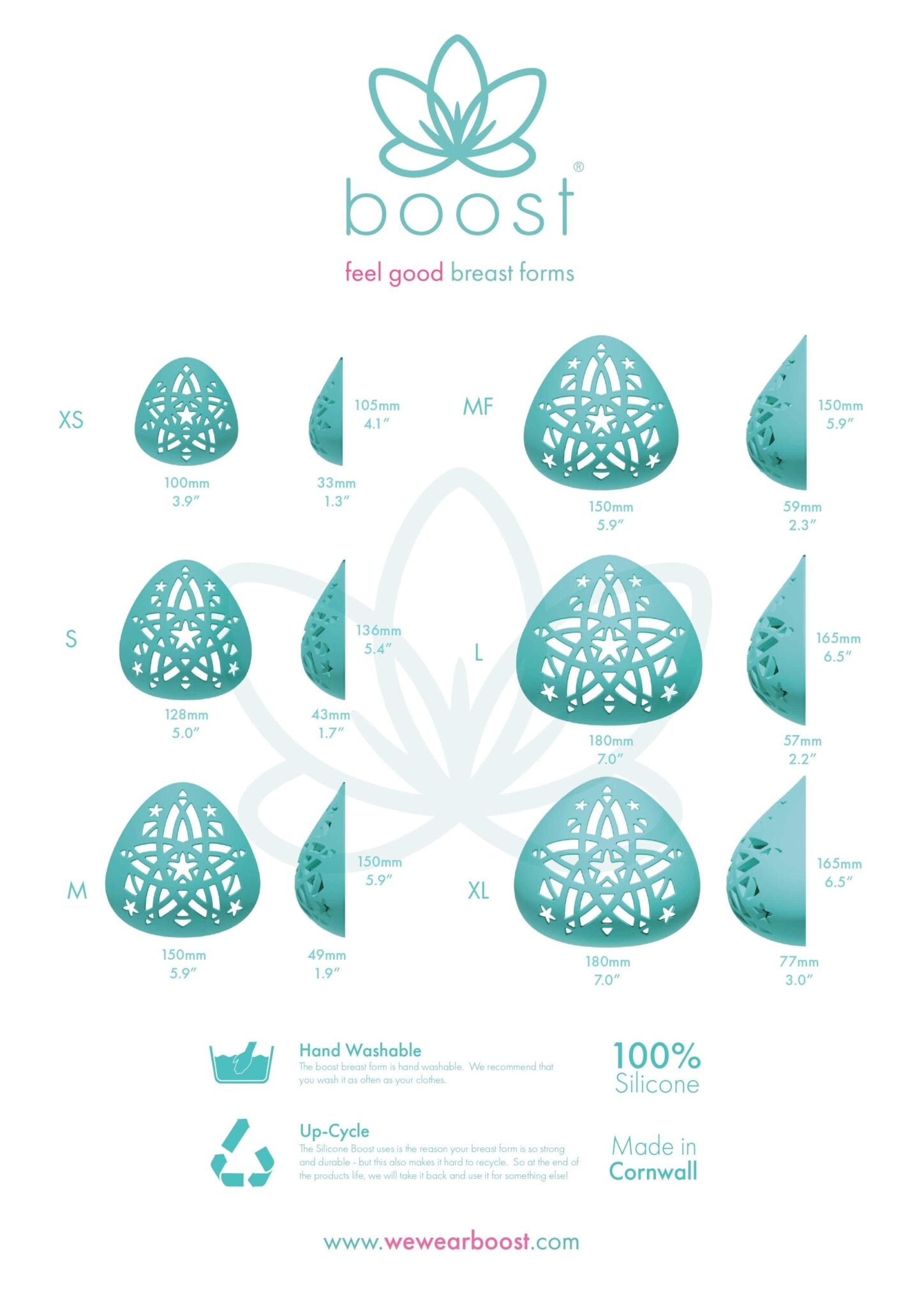 Boost’s innovative breast form combines a lightweight, breathable design with not only attractive colour and patterns but also its easy to clean. Good for swimming, saunas, steam rooms and can help you feel more comfortable wearing it in your daily life.