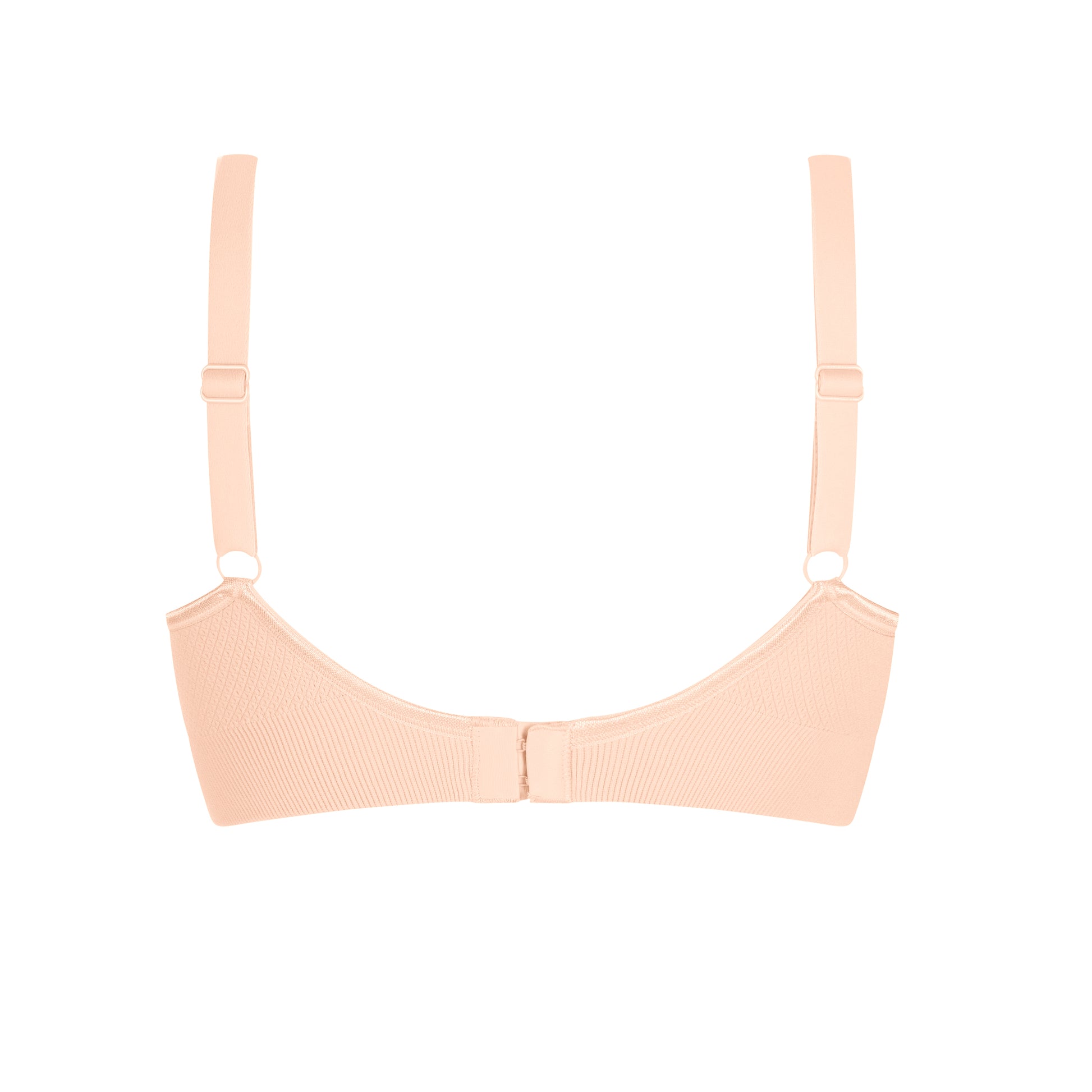 It features bilateral pockets with seamless knitted technology, removeable lightweight soft-cup padding, higher side- and back-coverage, a wider underbust band with soft, padded back-close and adjustable, elastic shoulder straps.
