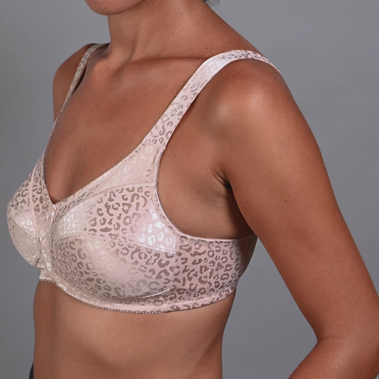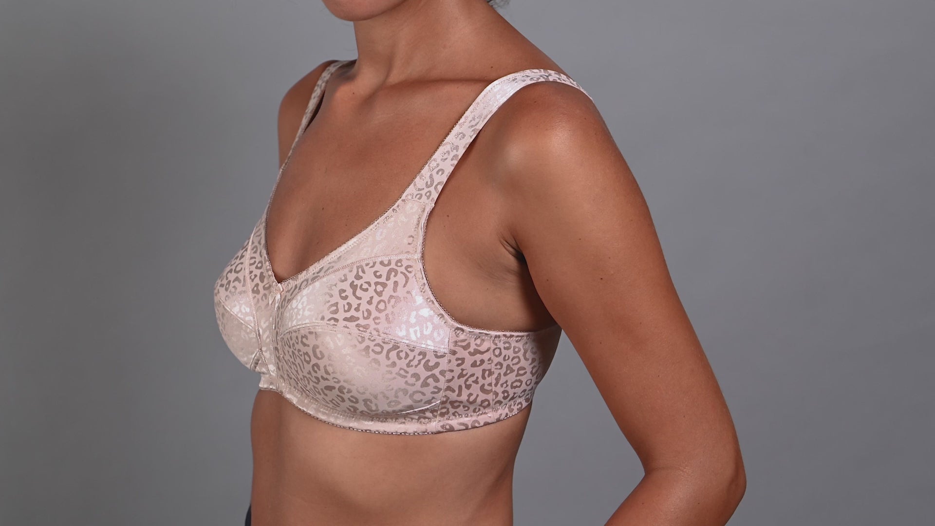 The Jenna wire-free Mastectomy Inclusive bra is a true embodiment of comfort and support. Designed for larger sizes, this wire-free bra offers an exceptional fit and feel. Its cup construction is thoughtfully crafted to provide the perfect shape and support for those seeking a well-fitting, wire-free option. Constructed from an ultra-soft and breathable cotton blend, the bra features pockets that are gentle on sensitive skin. Softly padded front straps ensure high comfort throughout the day, and adjustable elastic back straps allow for a customized fit. The softly padded back closures contribute to an elevated wearing experience, making the Jenna wire-free Bra an ideal choice for women looking for both style and comfort in their intimate apparel.