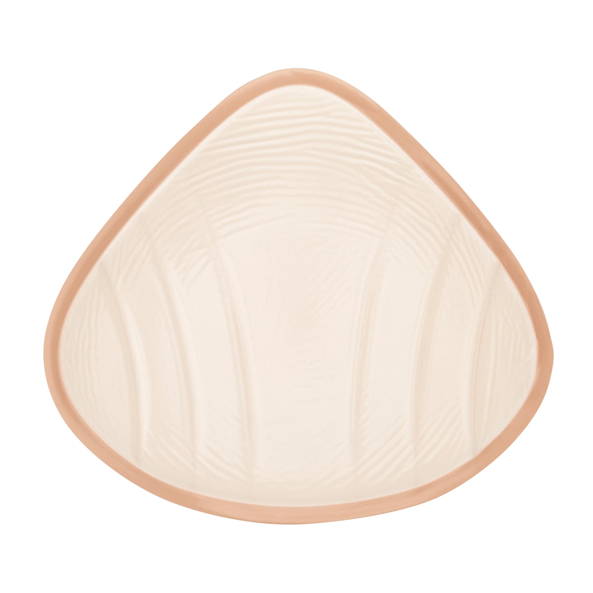 The Natura Xtra Light breast forms silicone formulation makes the weight of the form nearly 40% less than standard silicone forms of the same shapes and size, while maintaining standards for durability. Slightly firmer lightweight silicone in the back layer helps stabilise the form when worn in a bra pocket. Patented Comfort+ temperature-equalising material integrated into the back layer regulates fluctuations in body heat to help reduce perspiration behind the form.